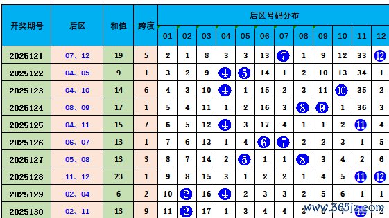 上期后区开出2路2路号码02,11。近10期012路比4:7:9,2路号码占优。本期预测后区开出2路2路号码05,08